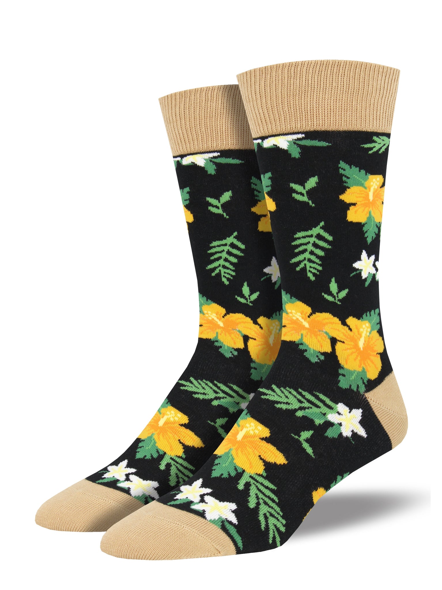 These Hawaiian flower socks want to say “Aloha!” to you feet. With bold, beautiful colors, you’re bound to start feeling that island breeze when you walk around in these floral socks. Be the big kahuna of your sock game!