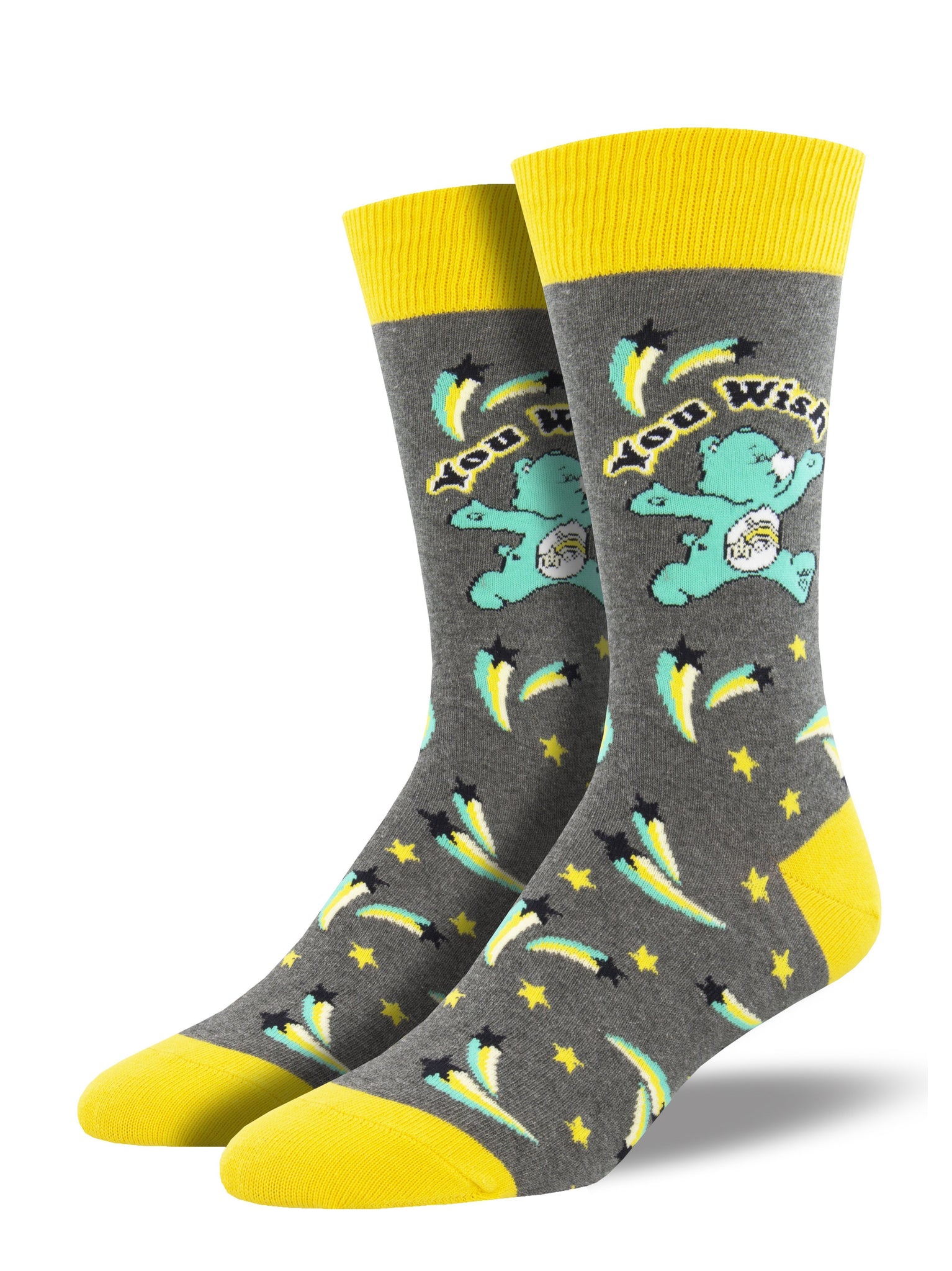 Stop wishing and start wearing! If you crave comfort and spirited style, Wish Bear is ready to deliver with these Care Bears socks. With shooting stars and a leaping Wish Bear, you can just feel all the positive energy radiating from these awesome socks!