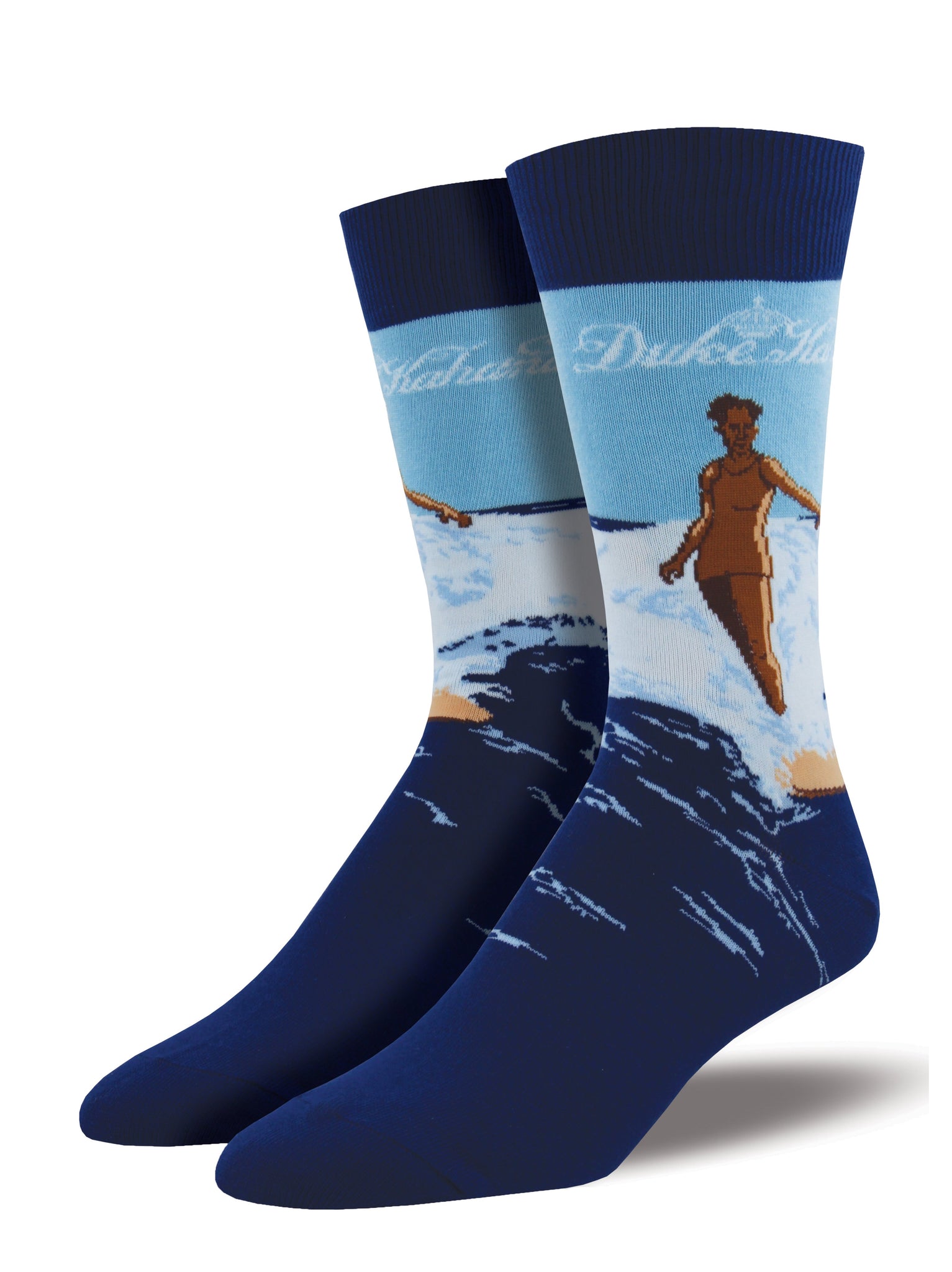These rad socks honor surfing icon Duke Kahanamoku, surfing a wave on his longboard. You'll love putting these socks on after you get out of the water.