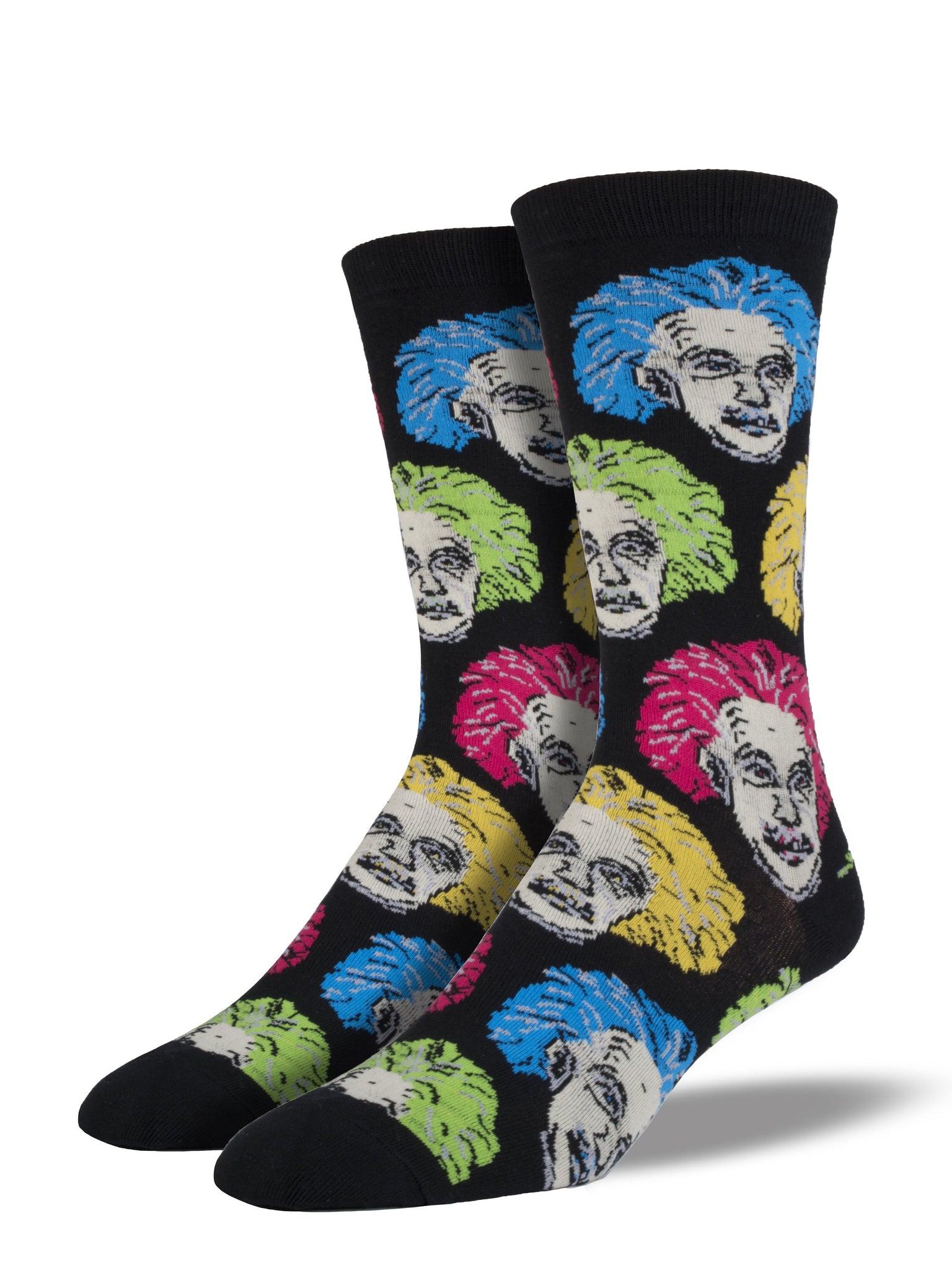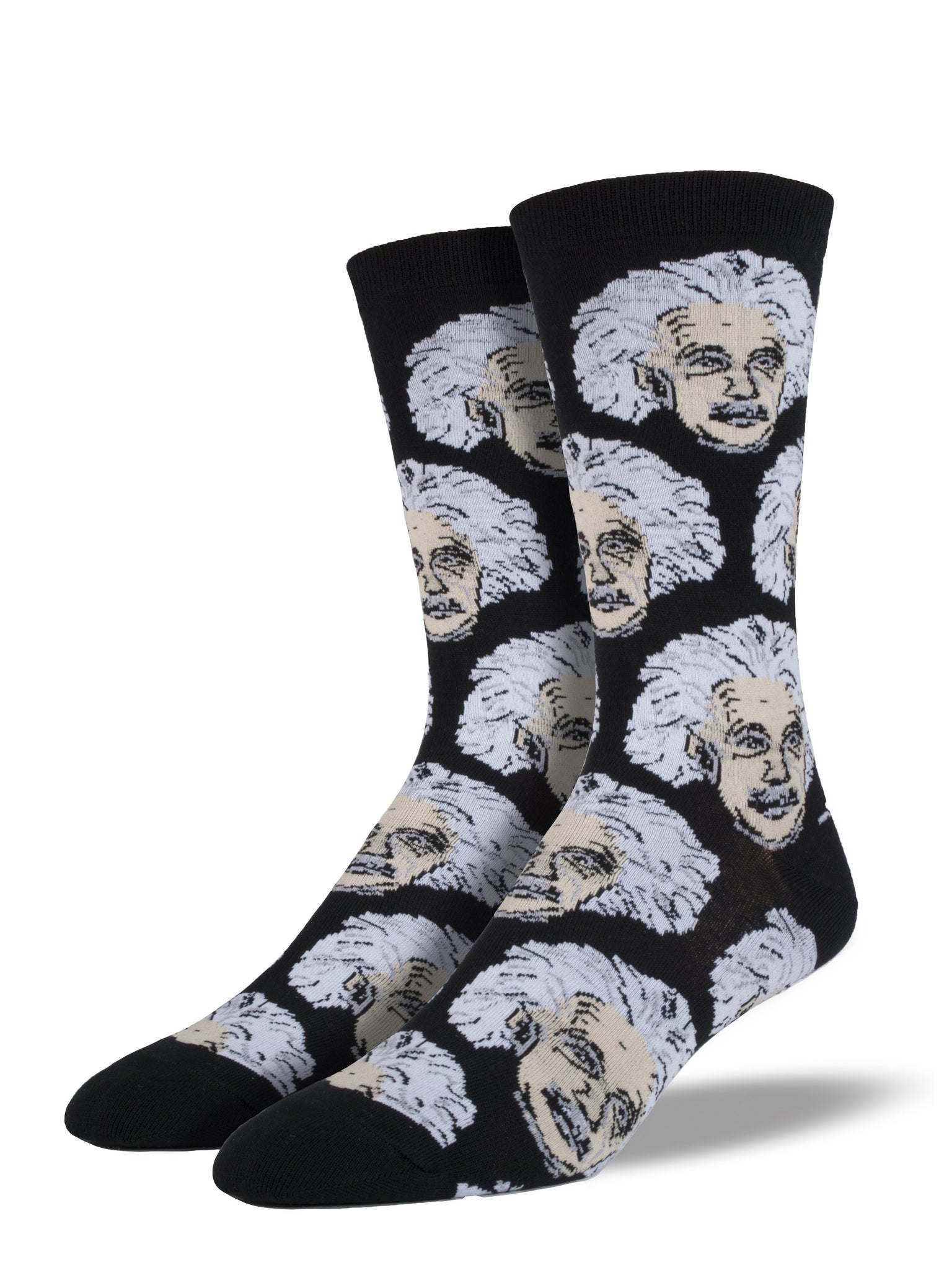 E = MC2 but you won't be a square in these Einstein socks! Did you know...Albert Einstein didn't wear socks? But we've decided he's crazy and that these socks will have you looking and feeling more intelligent.