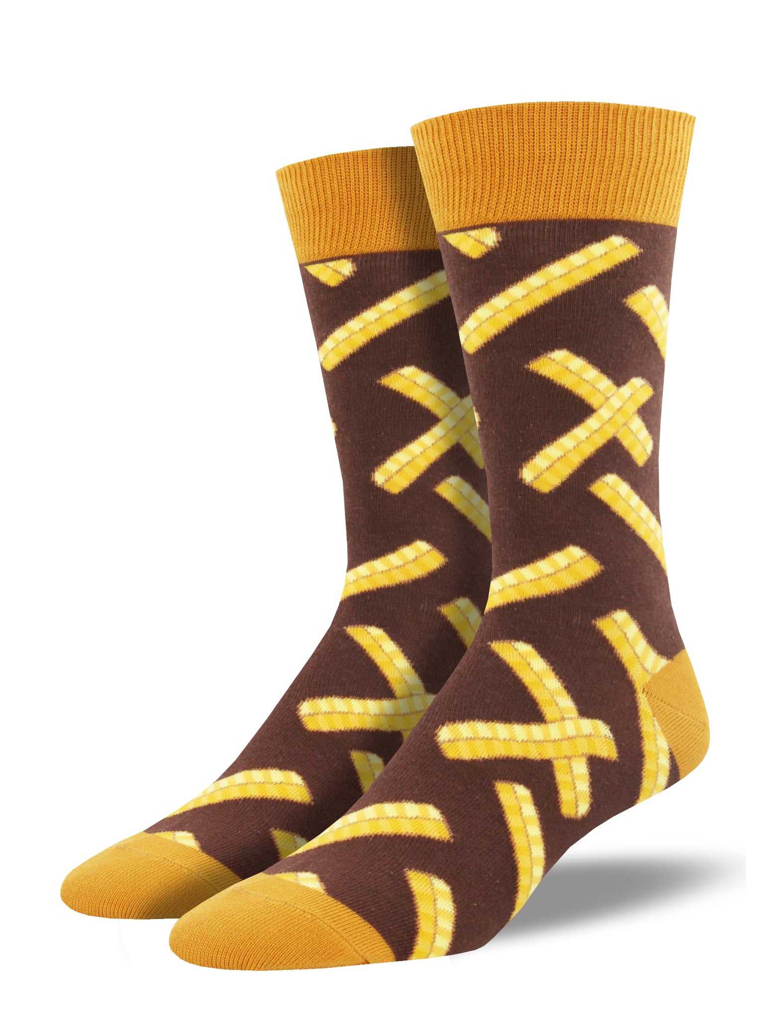 Golden, crispy, and delicious - these salty treats make for some fun socks! Bring the power of this popular side dish to your sock game with french fry socks.
