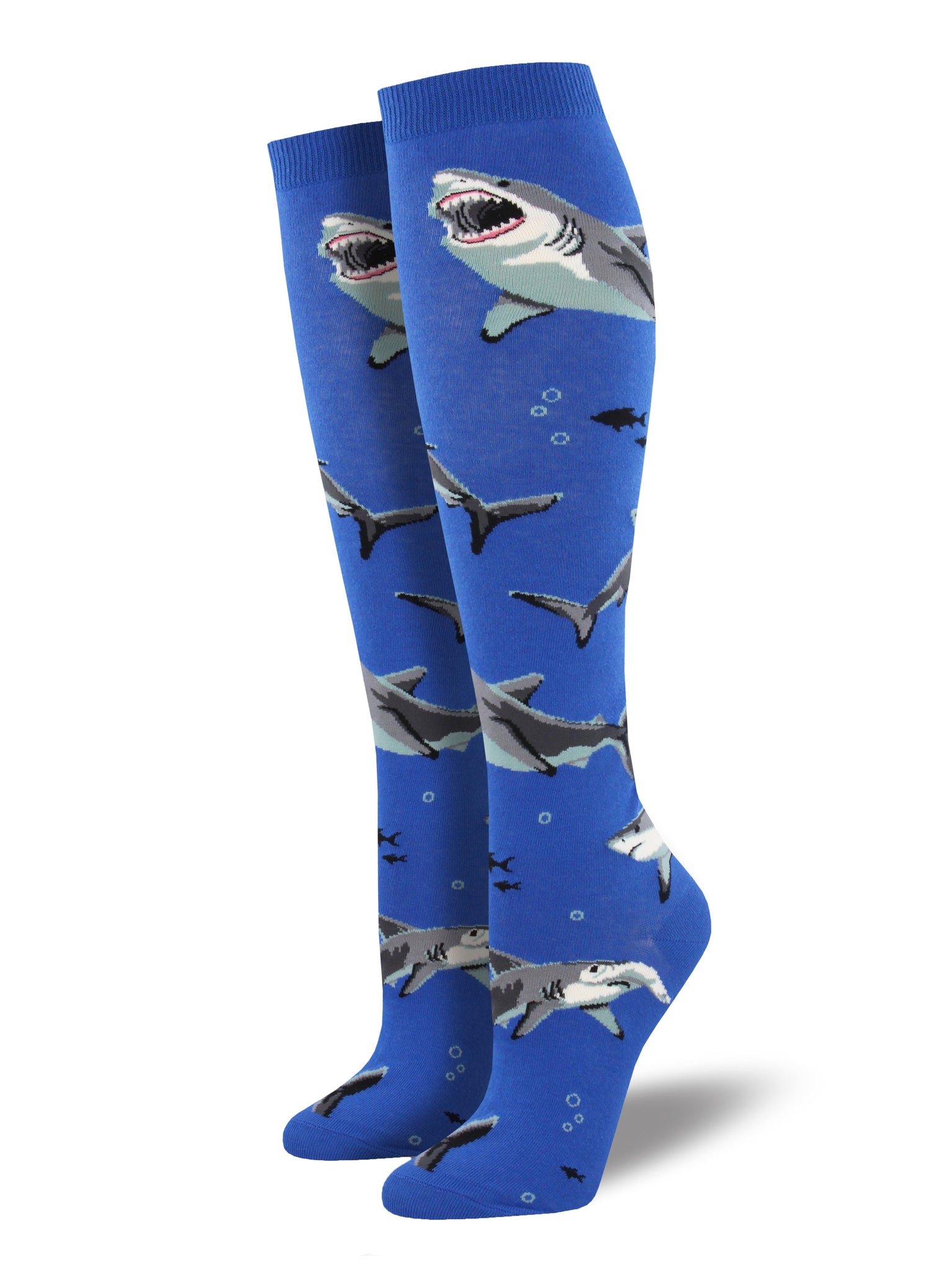 Chum up to our shark socks and put some bite in your style. Long and lovely, our knee high socks add extra fun to your wardrobe. Slip on these ocean life socks with a dress, and your outfit is duh duh duh duh done!